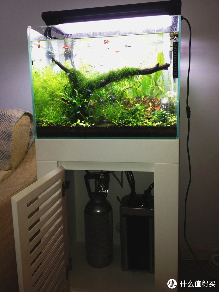 就我个人来说,我喜欢买鱼缸自己配各种器材,引用某位SMZDMer大大的名言——“人生在于折腾”,我也喜欢折腾,除了折腾水族、景,我还可以折腾设备。而且我只养小鱼小虾小草,超白缸足够用了。另外DIY的性价比较高,所以我选择超白缸。大家轻喷。